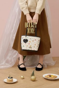กระเป๋าสะพาย รุ่น The Bucket Tote ลาย Wiggly heart dot สายสีดำ