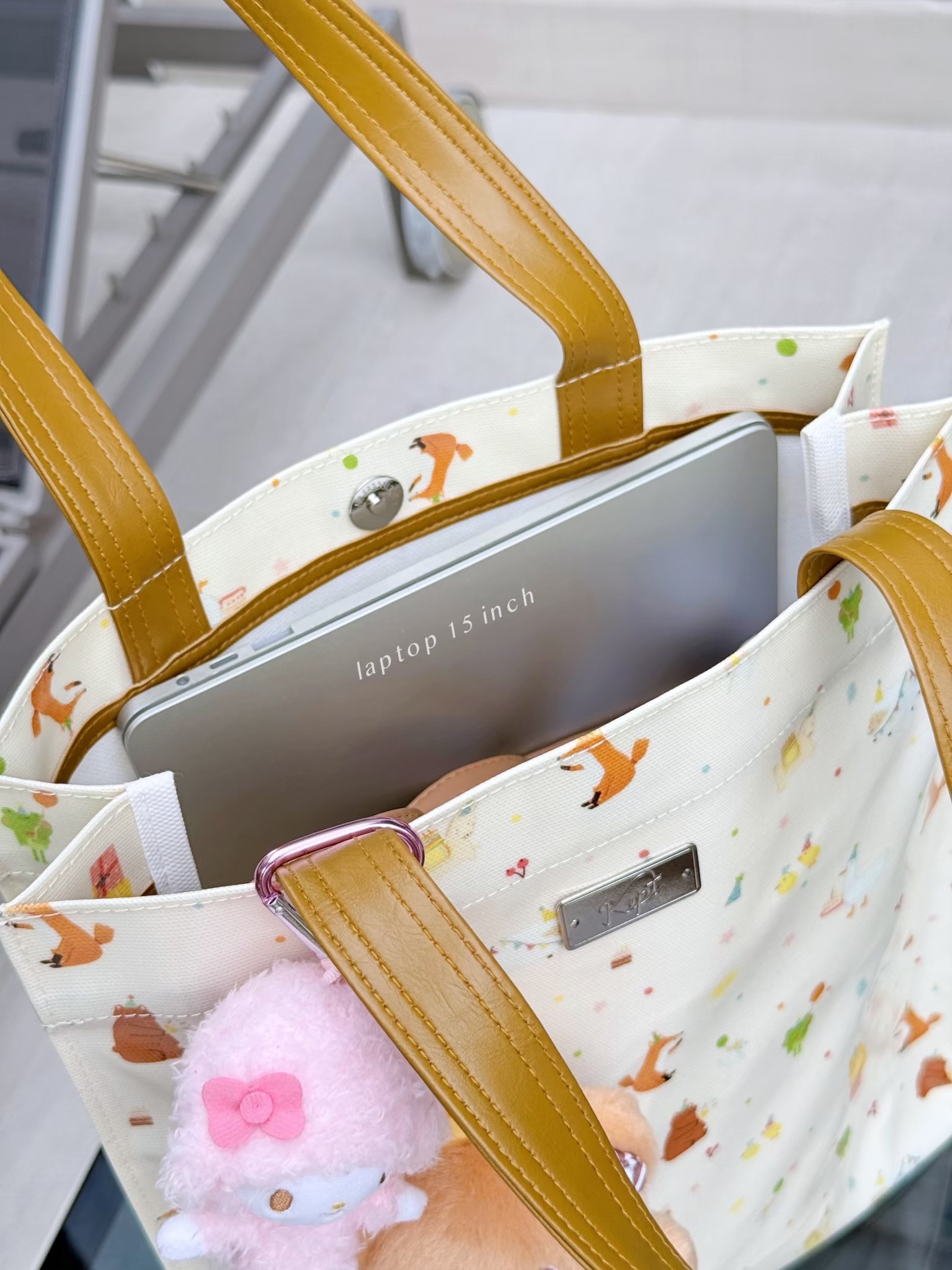 กระเป๋า (ไซส์ M “PLUS”) ลาย Fluffy party สีน้ำตาล